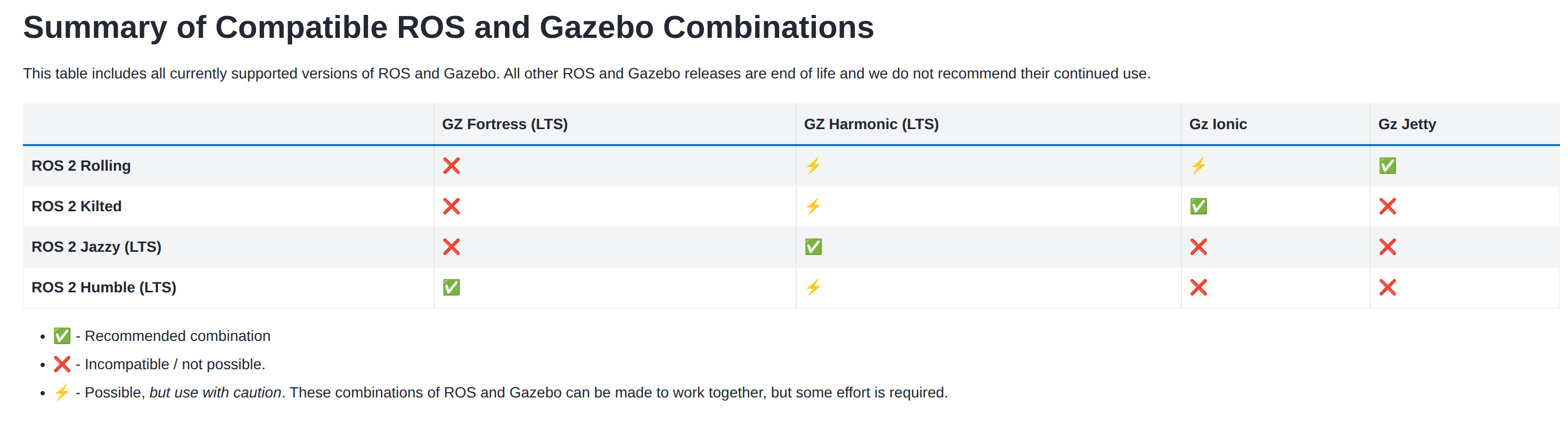 通过我们的筛选,由于 ROS2 kilted 这个版本对应的 lonic这个 Gazebo 版本将于今年六月份停止后续的维护,因此我们决定将 ROS2 迁移到目前 Gazebo 长期维护的 Harmonic版本所对应的 ROS2 版本——Jazzy。